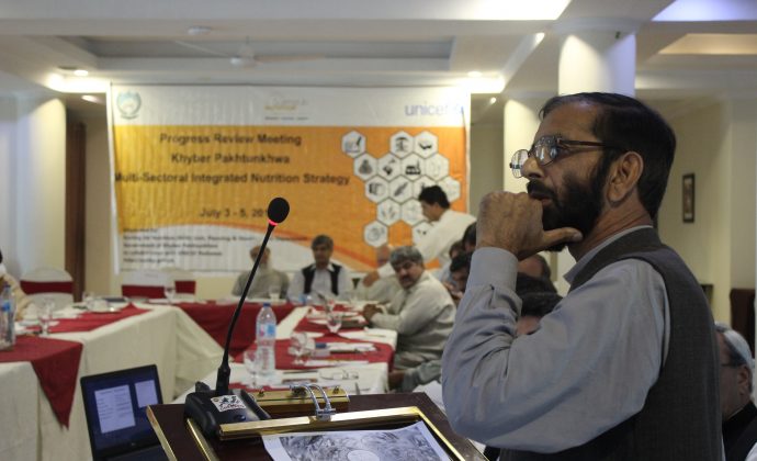 The subject meeting was held under the Chairmanship of Director General Health Services, Department of Health. Director Nutrition Dr. Fazal Majeed Director explained the objective of the meeting and gave the background of the Khyber Pakhtunkhwa Multi Sectoral Integrated Nutrition Strategy (KP-MS-INS). He stated that it was developed in the 2014 after