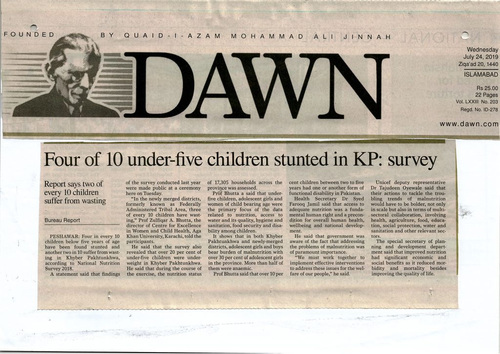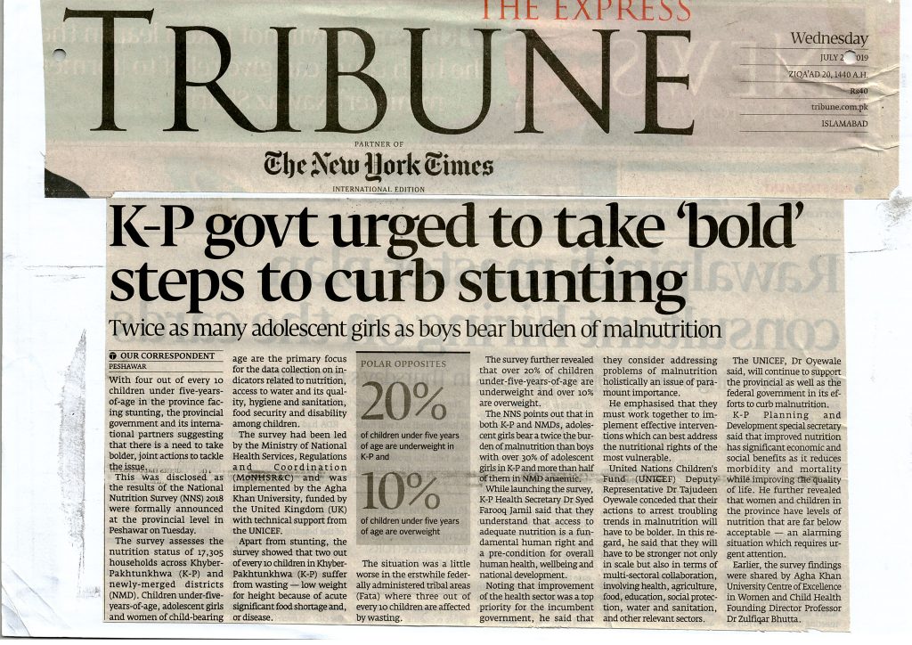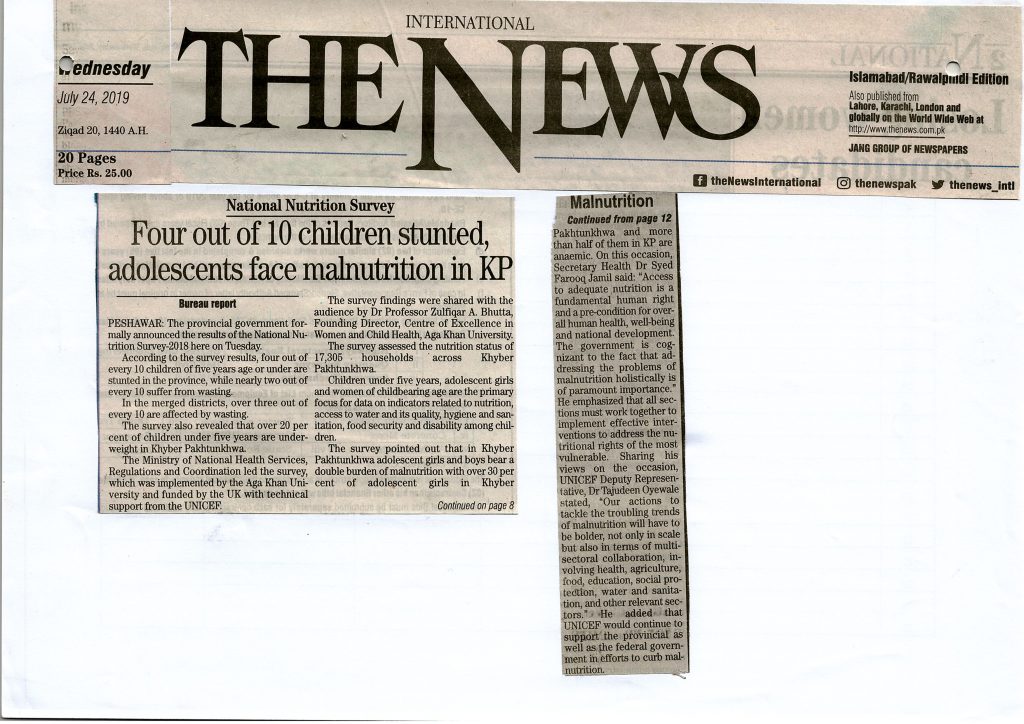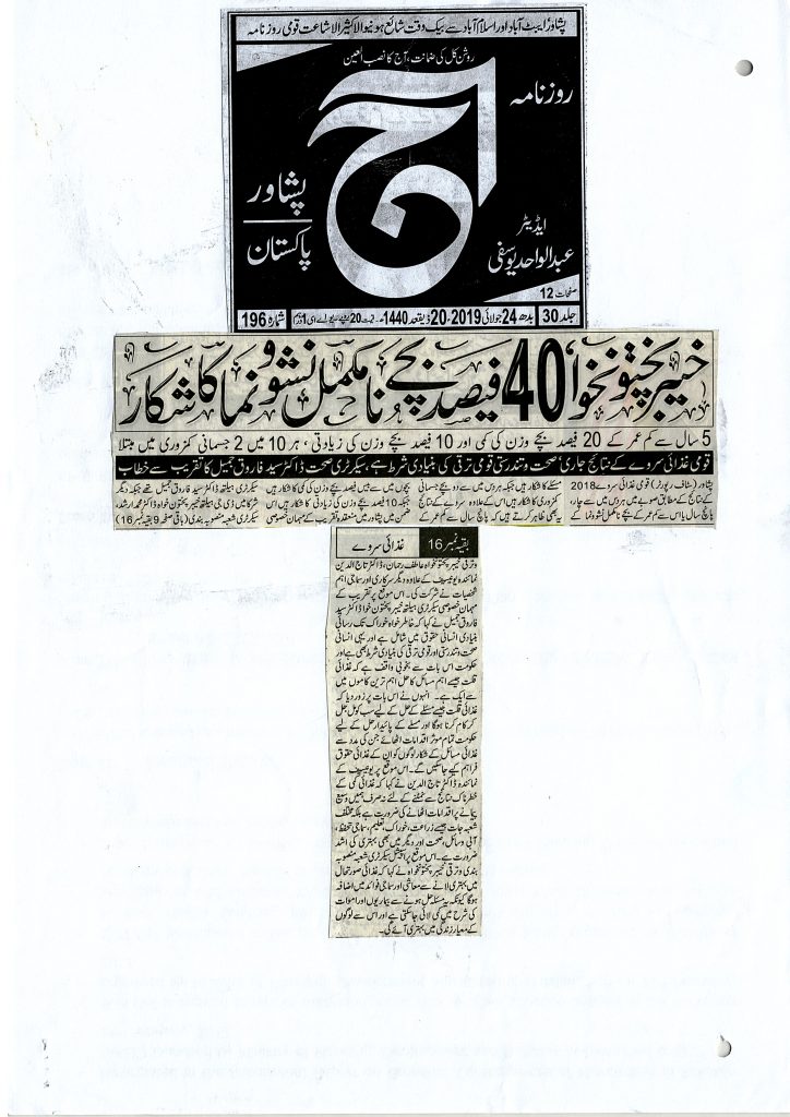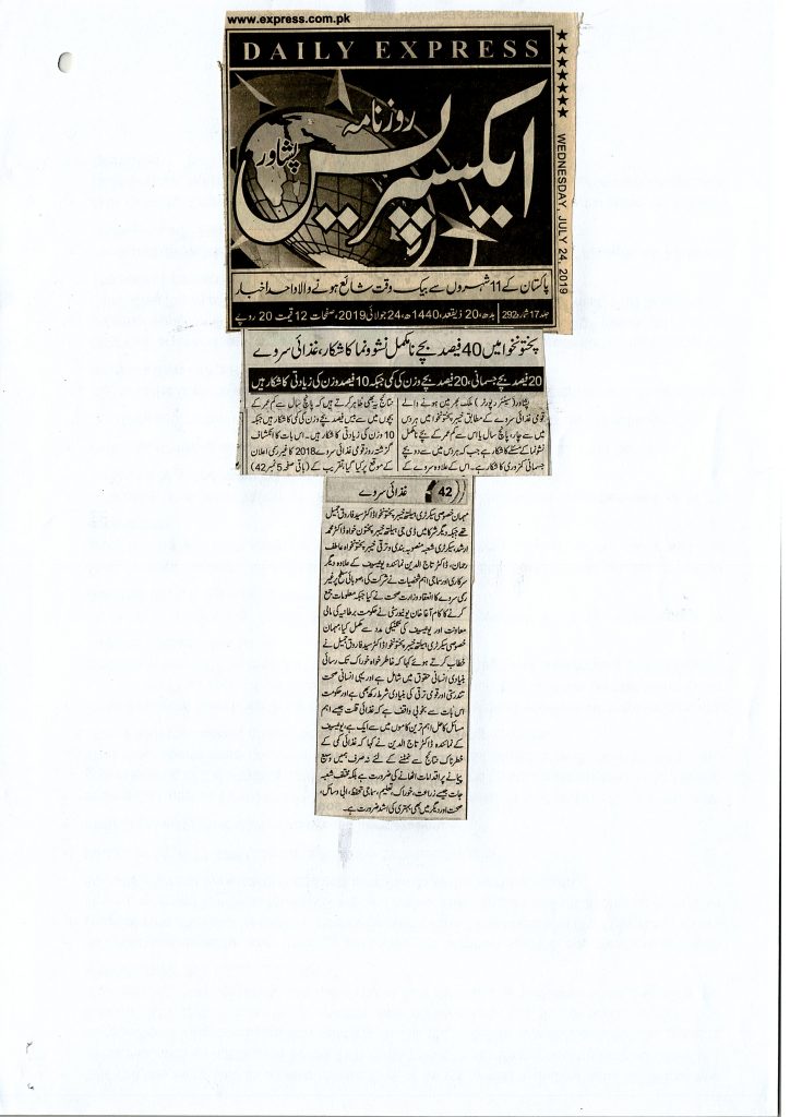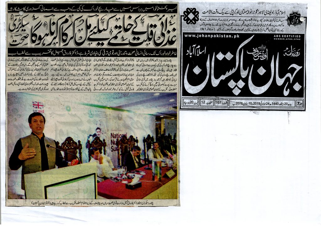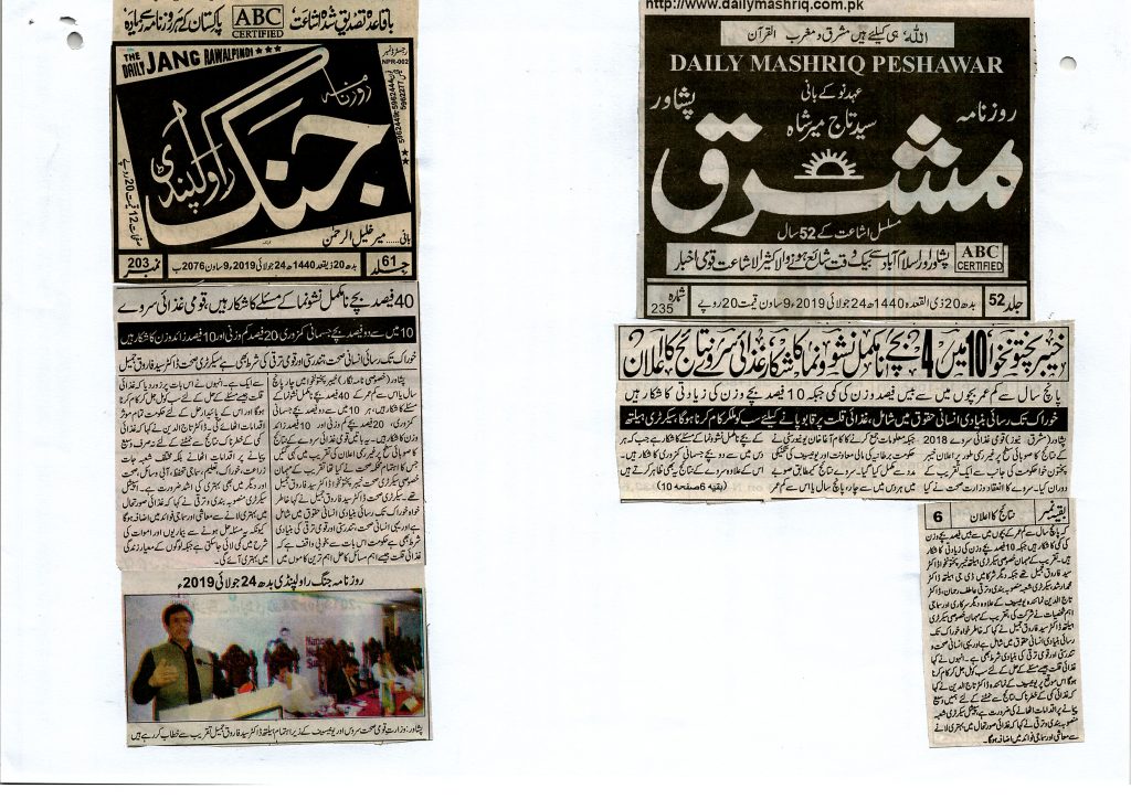 Provincial Launch of the National Nutrition Survey was carried out on 23rd July 2019 at Pearl Continental Hotel Peshawar.